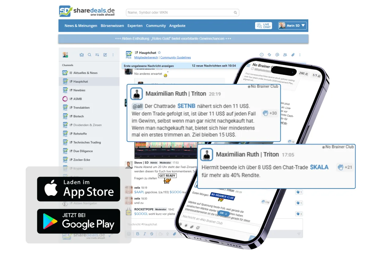 Das gilt insbesondere für unseren Chefanalysten Maximilian Ruth, sein Produktmanagement-Team und das Expertengremium, aber auch für die sehr starke Community mit zahlreichen Mitgliedern, die seit Jahren zu 100 Prozent von der Börse leben. Dieser Börsenclub ist in der DACH-Region einmalig, möglicherweise sogar darüber hinaus.