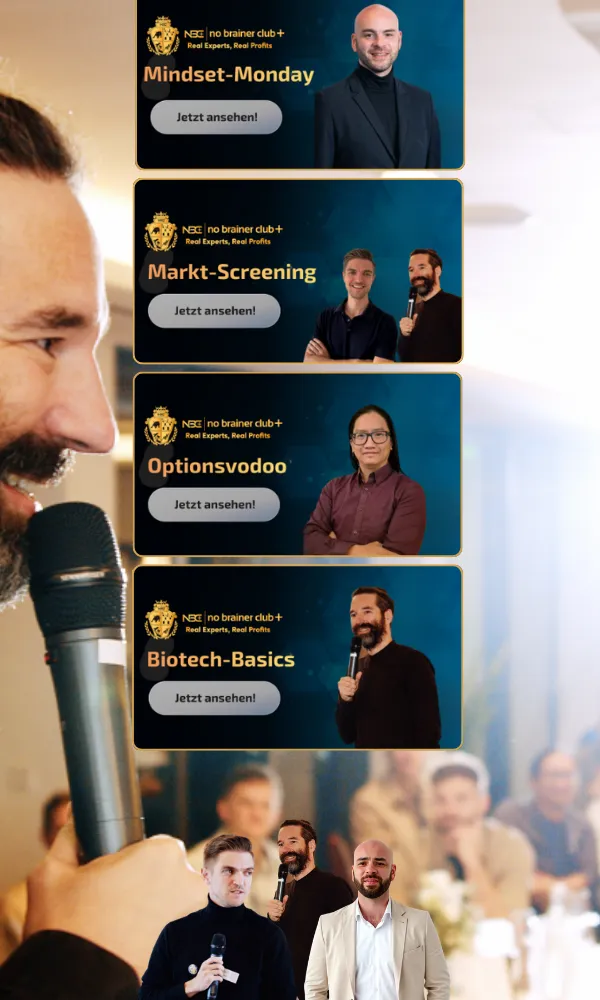 Im No Brainer Club sitzen alle in einem Boot. Maximilian und sein Experten-Gremium sind Vollblut-Börsianer, die ihr privates Vermögen mit Biotech-Investitionen vermehren und/oder aufgebaut haben. Bei uns findest Du keine Musterdepots. Deshalb liegt Maximilian genauso viel wie Dir daran, dass seine vorgestellten Investment-Cases aufgehen und hohe Renditen abwerfen.