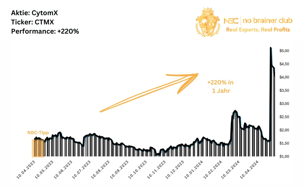 Wie schnell eine einzige News den Kurs einer Biotech-Aktie nach oben schnellen lassen kann, zeigt CytomX: Allein die Ankündigung einer verfrühten Studienvorstellung ließ den Kurs explodieren. Die NBCler scharrten bereits mit den Hufen und nahmen +220% Kursgewinn in 12 Monaten mit.